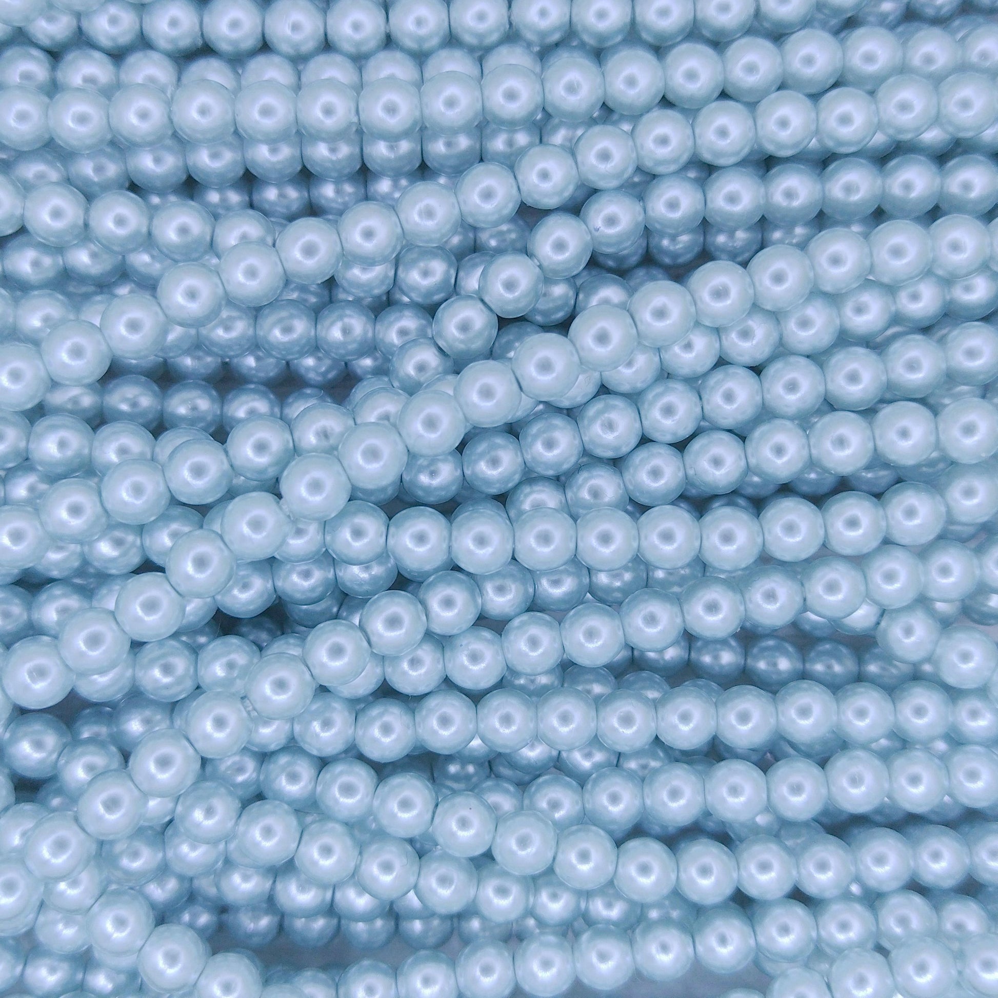 This is a string of 120 glass pearls in Ice Blue. They are made in the Czech Republic and measure 4mm in diameter. The Czech number for this colour is 70433.