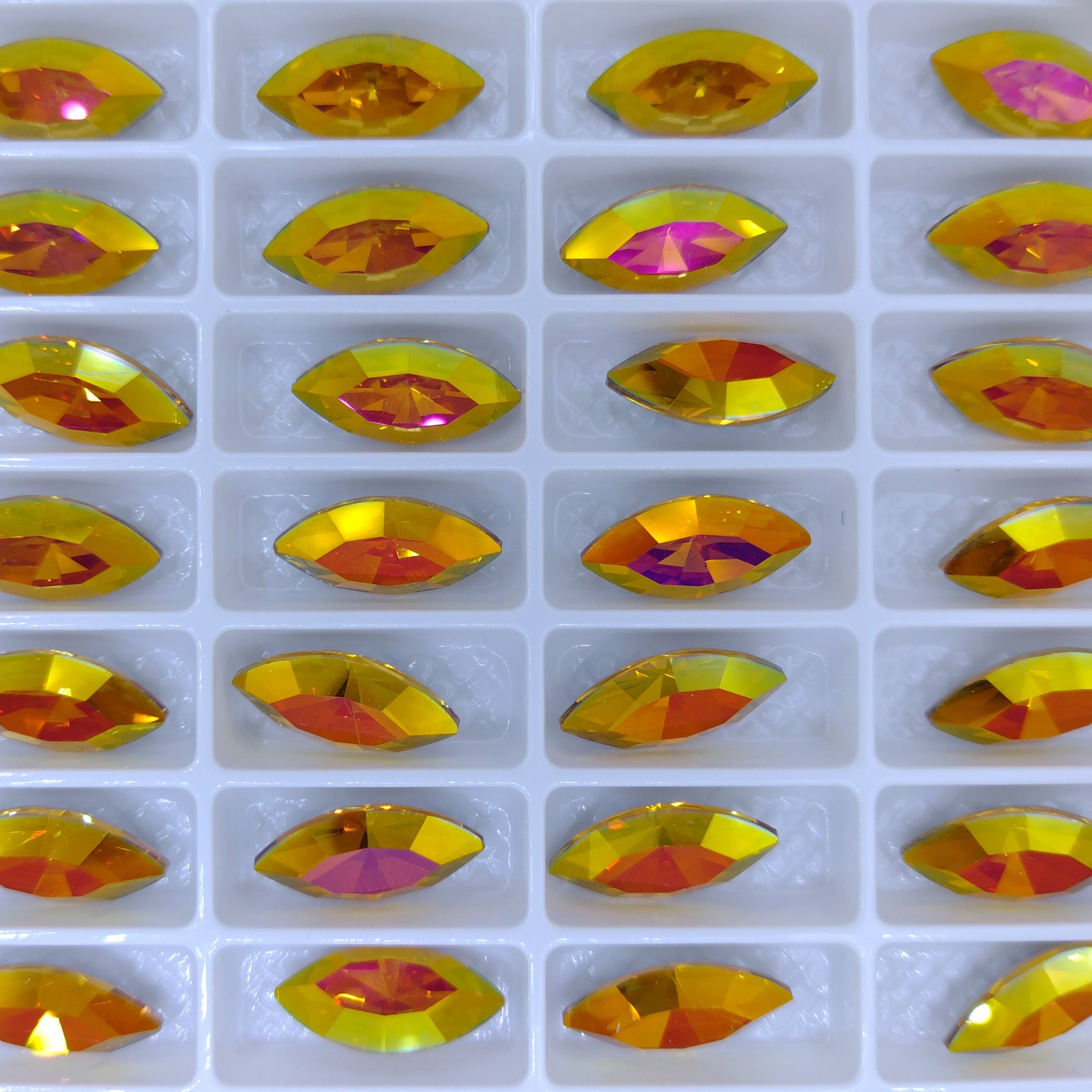 This is a 15x7mm navette from Aurora in Crystal Astral Pink with a silver foiled back. It was made by Aurora in China and is very similar to Swarovski's A4200.