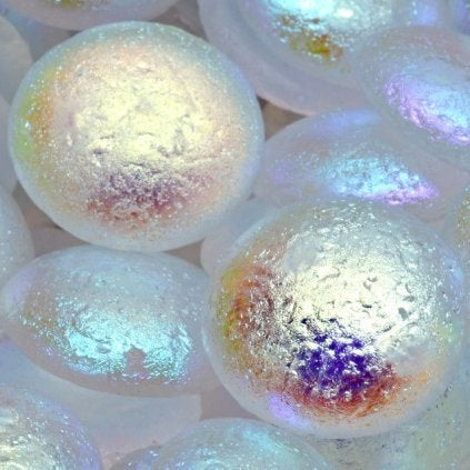 This is an 25mm Cabochon in etched Crystal AB. They are made in the Czech Republic and the Czech number for this colour is 00030/etch/28701.