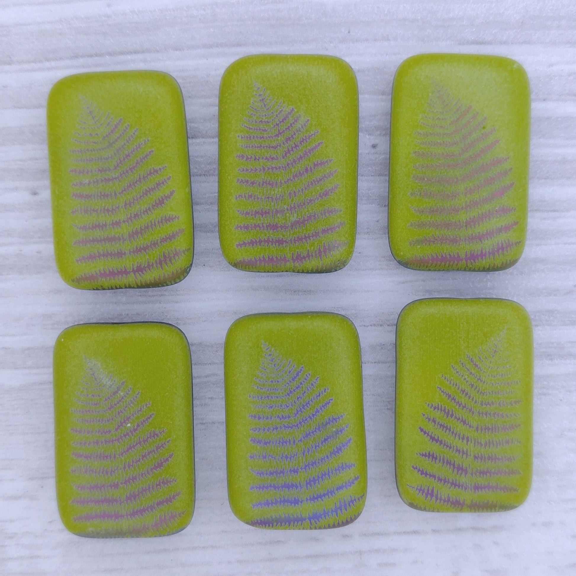 4 x Rectangular beads in Matt Olive Green with Fern design (18x12mm)