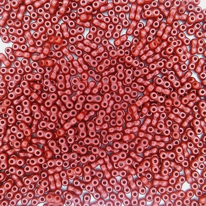 This is a 5g pack of Pastel Dark Coral infinity beads which are about 5mm by 2mm. They have two holes which are approximately 1mm in size.The Czech number for this colour is 25010.