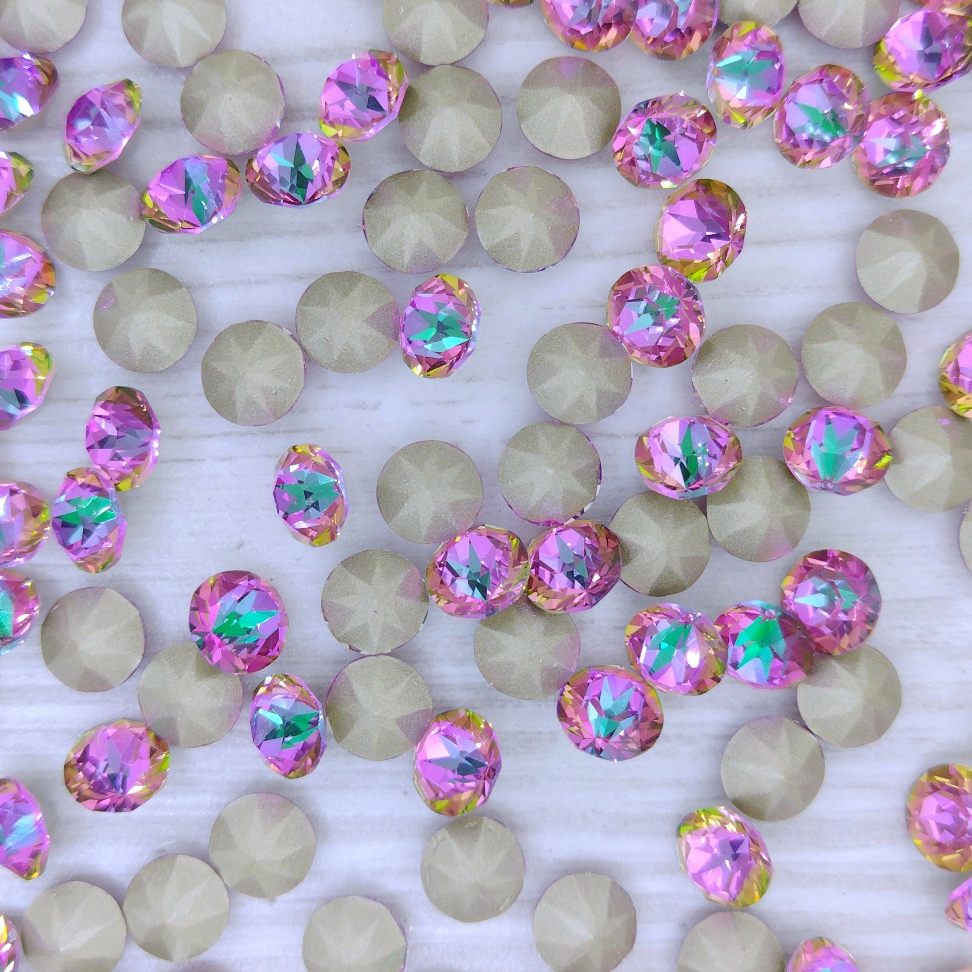 This is a 6mm chaton from Aurora in Crystal Heliotrope. It was made by Aurora in China and is very similar to Swarovski's A1088.