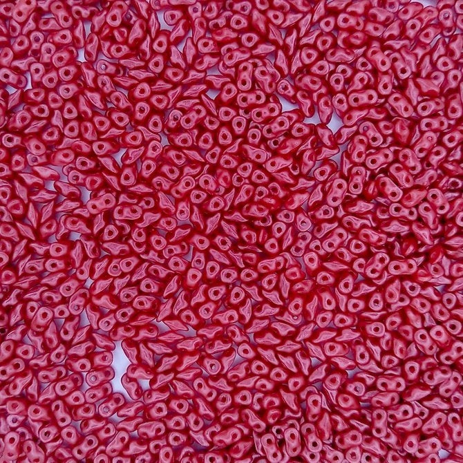 This is a 5g pack of Super8 beads in Pastel Dark Coral. These two holed seed beads measure about 2.2mm x 4.7mm with a narrow waist. Each pack contains about 180 beads.The Czech number for this colour is 25010.